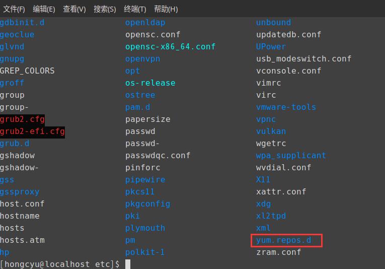 输入ls -l即可看见配置文件,默认的后缀是repo
