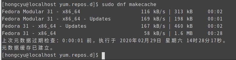 最后运行 sudo dnf makecache 生成缓存。