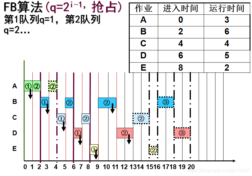 3.IF时间片内未能完成,调度程序便将该进程转入第二队列的末尾等待再次被调度执行。