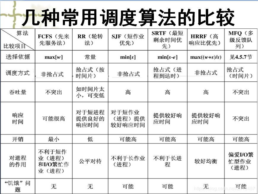 4.有利于CPU繁忙型的作业,而不利于I/O繁忙的作业(进程)。