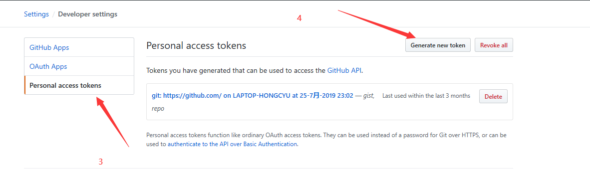 最后点击Generate token即可看到显示的token页面,它只会显示一次,关闭页面后再打开这个页面就不会显示了。复制token值粘贴到文本文档中,先保存下来,后面配置PicGo要用到。